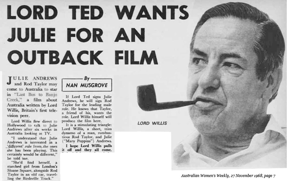 Weekly, 1968: Lord Ted wants Julie for an Outback film